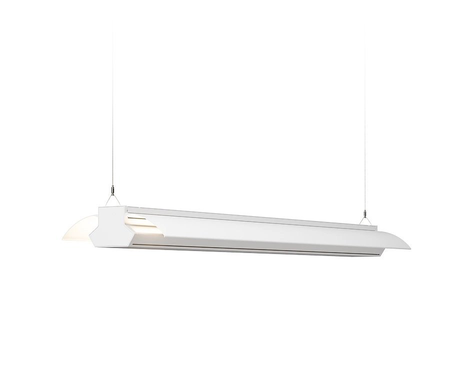 For spaces with dark or non-reflective ceilings, a high-reflectance blade accessory redirects light downward, providing soft and glare-free direct illumination.