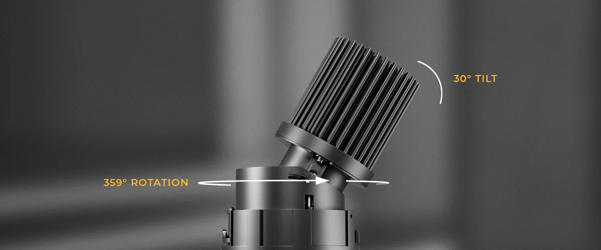 The REV Flex Prime features an adjustable design that can rotate up to 359° and tilt to 30°, allowing convenient hot aiming for any installation. Its versatile form pairs with multiple trim styles, giving specifiers greater flexibility to meet a wide range of architectural lighting needs.
